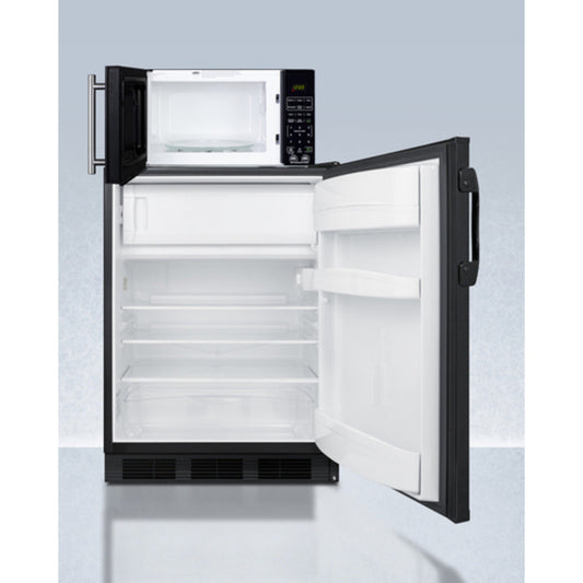 Summit Appliance 24" Black Finish Microwave and Refrigerator-Freezer Combo with Allocator