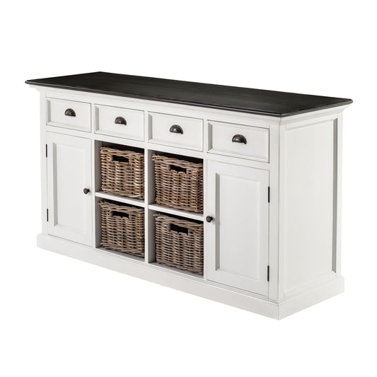 NovaSolo Halifax Contrast 63" Classic White & Black Mahogany Buffet With 4 Drawers & 4 Rattan Baskets