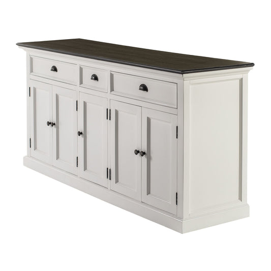 NovaSolo Halifax Contrast 71" Classic White & Black Mahogany Buffet With 5 Doors & 3 Drawers