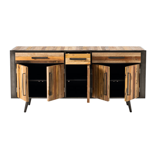 NovaSolo Nordic 71" Natural Boat Wood Buffet With 5 Doors & 3 Drawers