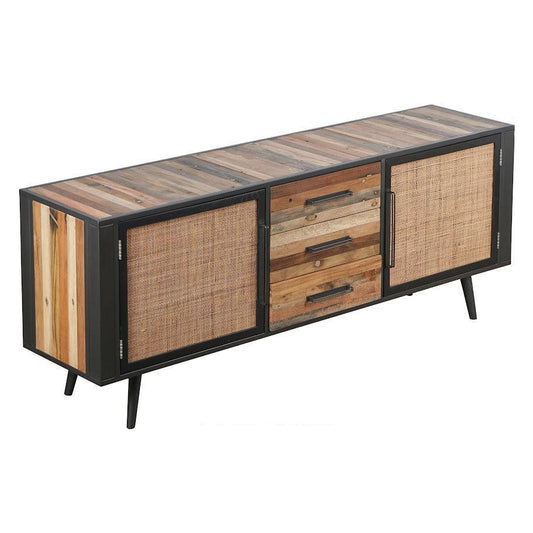 NovaSolo Nordic 71" Natural Boat Wood Buffet With 5 Doors & Rattan Accents