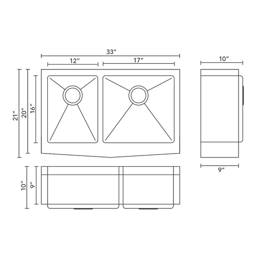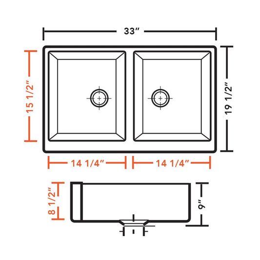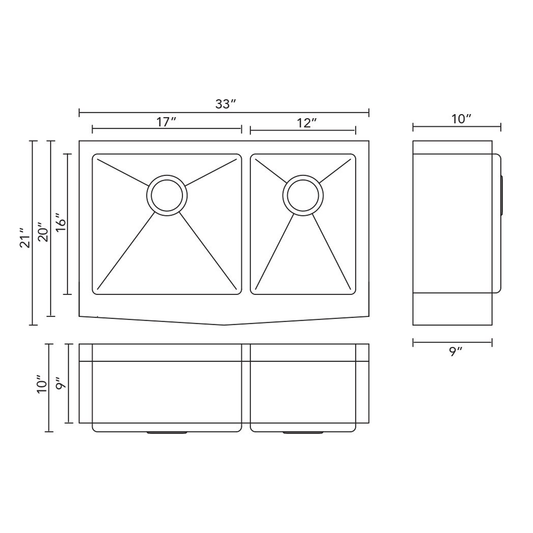 Pelican Int'l Handmade Series PL-HA139 R15 16 Gauge Stainless Steel Farmhouse Kitchen Sink 33" x 21" with Micro Radius Corners