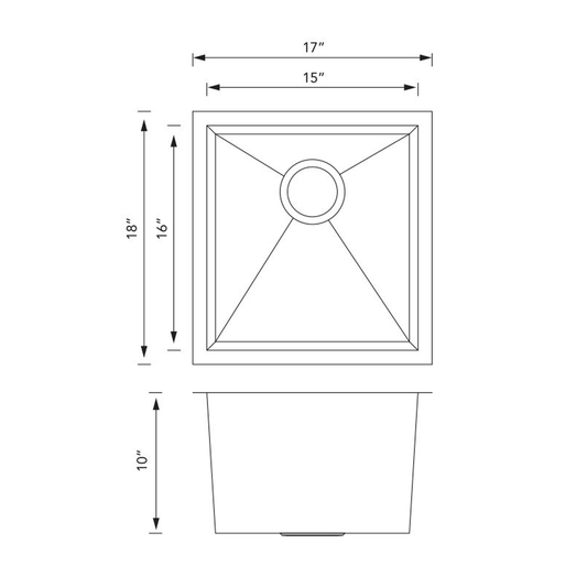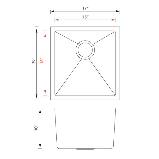 Pelican Int'l Handmade Series PL-HA104 16 Gauge Stainless Steel Undermount Kitchen Sink 17" x 18" with Zero Radius Corners