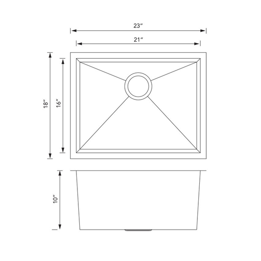 Pelican Int'l Handmade Series PL-HA108 16 Gauge Stainless Steel Undermount Kitchen Sink 23" x 18" with Zero Radius Corners