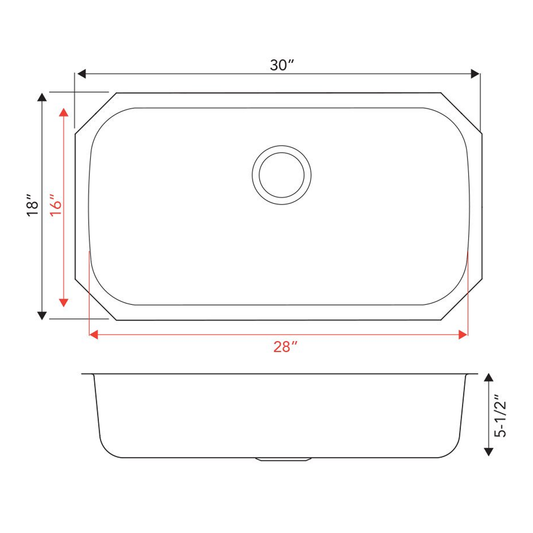 Pelican Int'l Signature Series PL-VS3018 ADA Compliant 18 Gauge Stainless Steel Single Bowl Undermount Kitchen Sink 30" x 18"