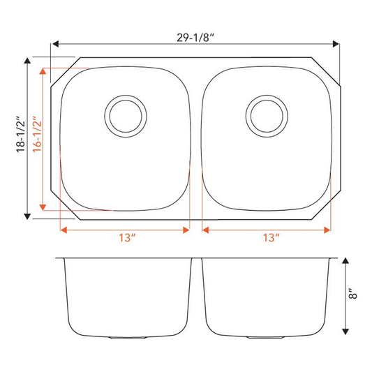 Pelican Int'l Signature Series PL-VS4040 18 Gauge Stainless Steel Double Bowl Undermount Kitchen Sink 29 1/8" x 18 1/2"
