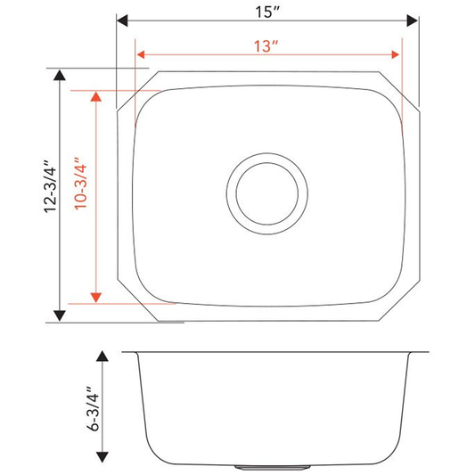 Pelican Int'l Signature Series PL-VS1513 18 Gauge Stainless Steel Single Bowl Undermount Kitchen Sink 15" x 12 3/4"