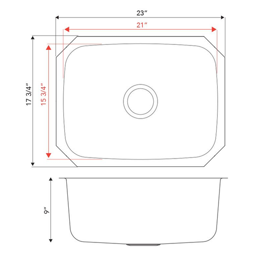 Pelican Int'l Signature Series PL-VS2318 16 Gauge Stainless Steel Single Bowl Undermount Kitchen Sink 23" x 17 3/4"