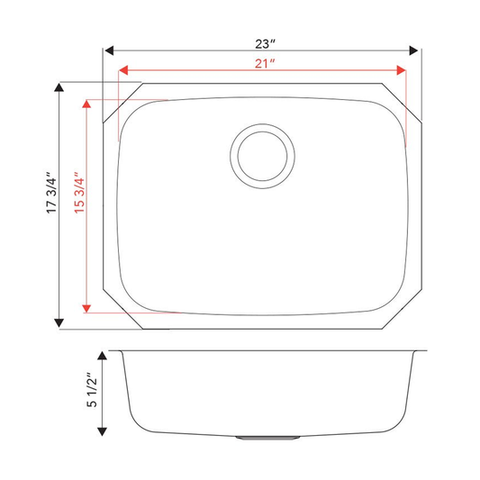 Pelican Int'l Signature Series PL-VS2318 ADA Compliant 18 Gauge Stainless Steel Single Bowl Undermount Kitchen Sink 23" x 17 3/4"