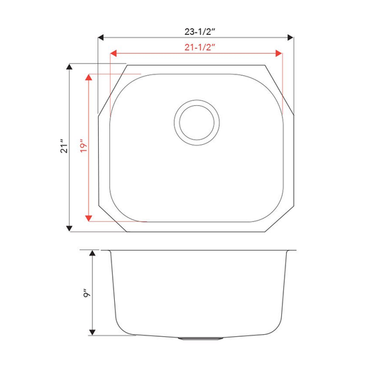 Pelican Int'l Signature Series PL-VS2321 18 Gauge Stainless Steel Single Bowl Undermount Kitchen Sink 23 1/2" x 21"