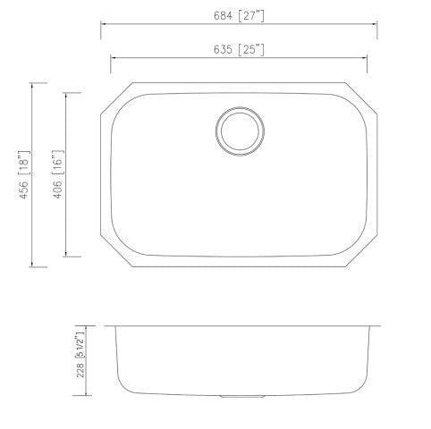 Pelican Int'l Signature Series PL-VS2718 ADA Compliant 18 Gauge Stainless Steel Single Bowl Undermount Kitchen Sink 27" x 17 3/4"