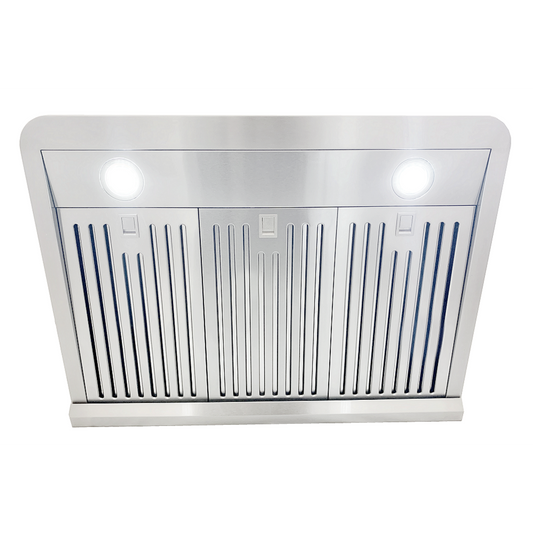 KOBE Brillia INX27 SQB-700-3 Series 30" Insert or Built-in Range Hood With 550 CFM Internal Blower, 3-Speed Mechanical Push Button, Dishwasher-Safe Baffle Filters and Aluminum Mesh Filters, and LED Lights