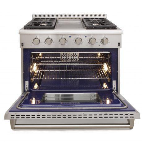 Kucht KRG Series 36" Freestanding Natural Gas Range With 4 Burners, Griddle and Royal Blue Knobs