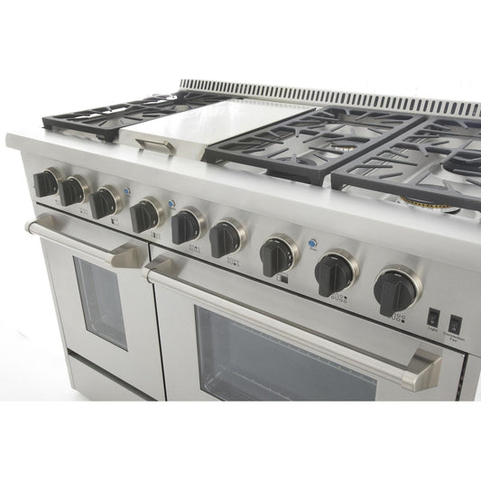 Kucht KRD Series 48" Freestanding Propane Gas Dual Fuel Range With 6 Burners, Griddle and Classic Silver Knobs