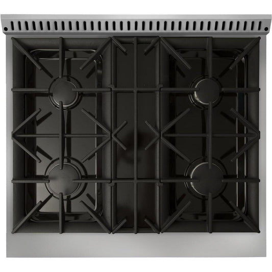 Forte 30" Stainless Steel LP Convertible Residential Natural Gas Rangetop Cooktop With 4 Sealed Italian Burners, Power Cord, Grate, Backsplash, and Conversion Kit