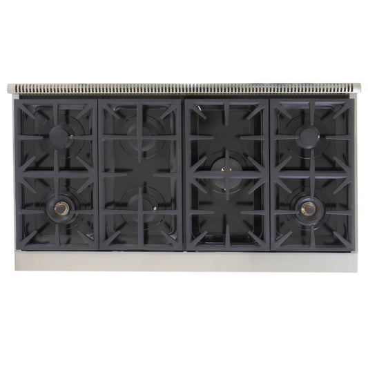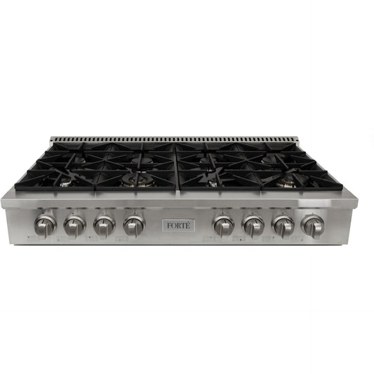 Forte 48" Stainless Steel LP Convertible Residential Natural Gas Rangetop Cooktop With 8 Sealed Italian Burners, Power Cord, Grate, Griddle, Grill, Backsplash, and Conversion Kit