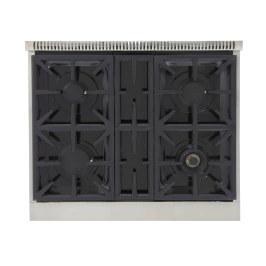 Forte 36" Stainless Steel LP Convertible Residential Natural Gas Rangetop Cooktop With 6 Sealed Italian Burners, Power Cord, Grate, Backsplash, and Conversion Kit