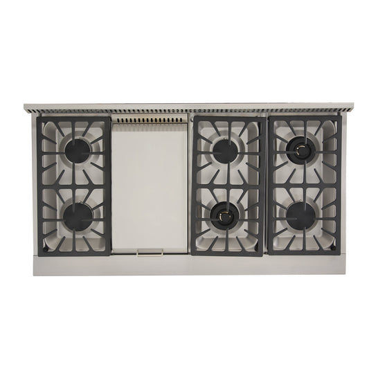 Kucht KRT Series 48" Propane Gas Range-Top With 6 Burners, Griddle and Tuxedo Black Knobs