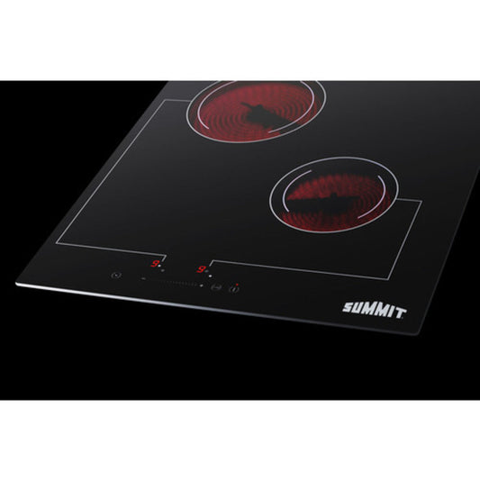Summit Appliance 15" 230V Black Glass Finish 2-Burner Radiant Cooktop