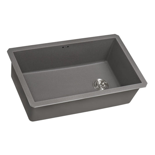 Ruvati epiGranite 30” x 18” Silver Gray Undermount Granite Single Bowl Kitchen Sink With Basket Strainer, Bottom Rinse Grid and Drain Assembly