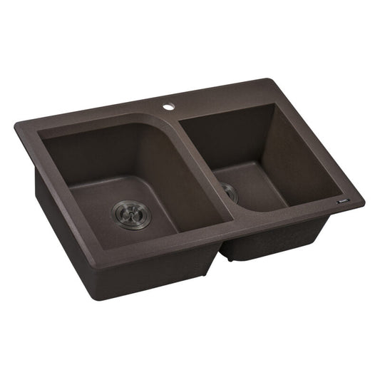 Ruvati epiGranite 33" x 22" Espresso Brown Dual-Mount Granite 70/30 Double Bowl Kitchen Sink With Basket Strainer and Drain Assembly