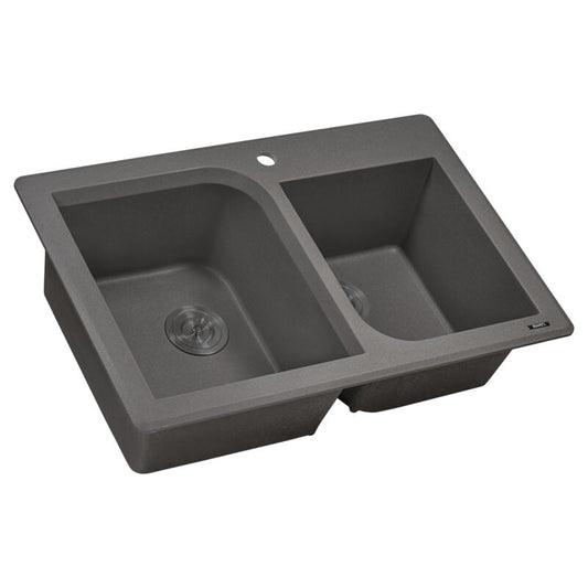 Ruvati epiGranite 33" x 22" Urban Gray Dual-Mount Granite 70/30 Double Bowl Kitchen Sink With Basket Strainer and Drain Assembly