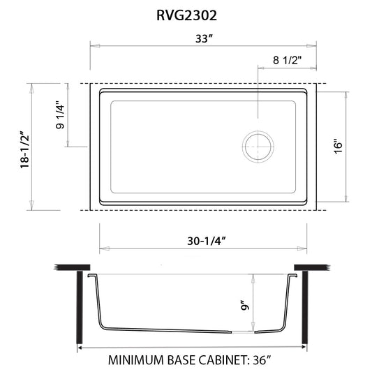 Ruvati epiGranite 33” x 19” Midnight Black Undermount Granite Single Bowl Kitchen Sink With Basket Strainer, Bottom Rinse Grid and Drain Assembly