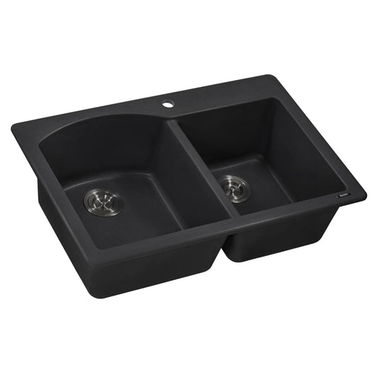 Ruvati epiGranite 33" x 22" Midnight Black Dual-Mount Granite 60/40 Double Bowl Kitchen Sink With Basket Strainer and Drain Assembly