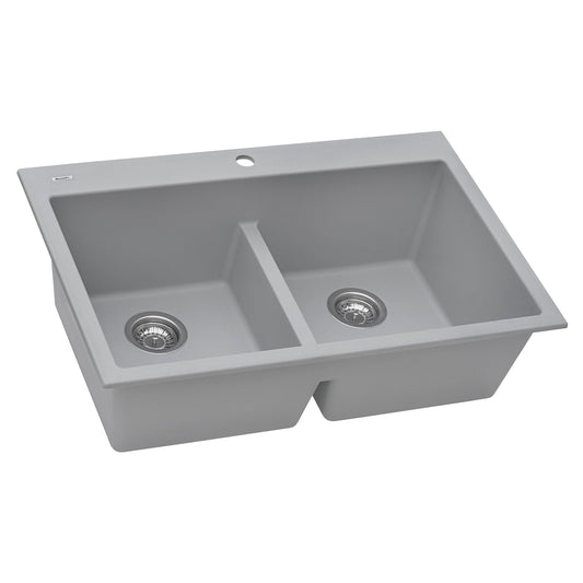 Ruvati epiGranite 33" x 22" Silver Gray Drop-In Topmount Granite 60/40 Double Bowl Kitchen Sink With Basket Strainer and Drain Assembly