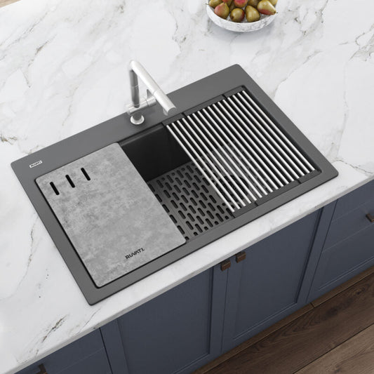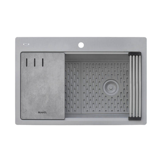 Ruvati epiStage 33" x 22" Urban Gray Drop-in Workstation Granite Composite Single Bowl Kitchen Sink With Basket Strainer and Drain Assembly