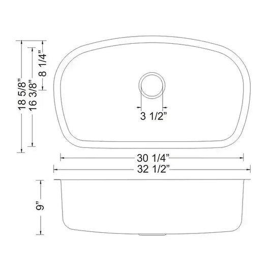 Kibi 32 3/4" x 19" x 10" Handcrafted Undermount Single Bowl Stainless Steel Kitchen Sink With Satin Finish