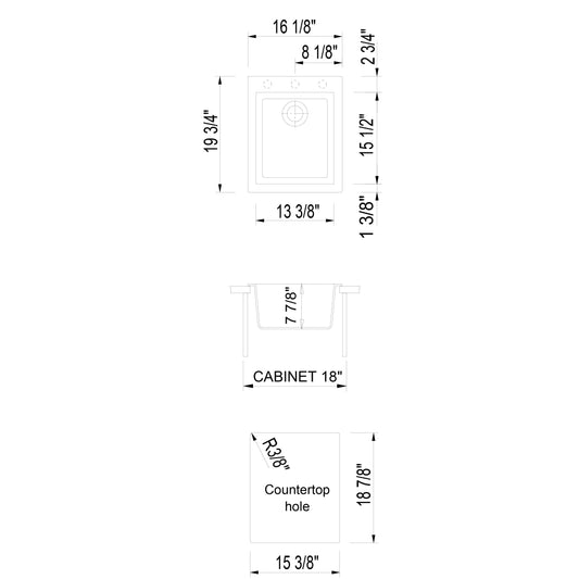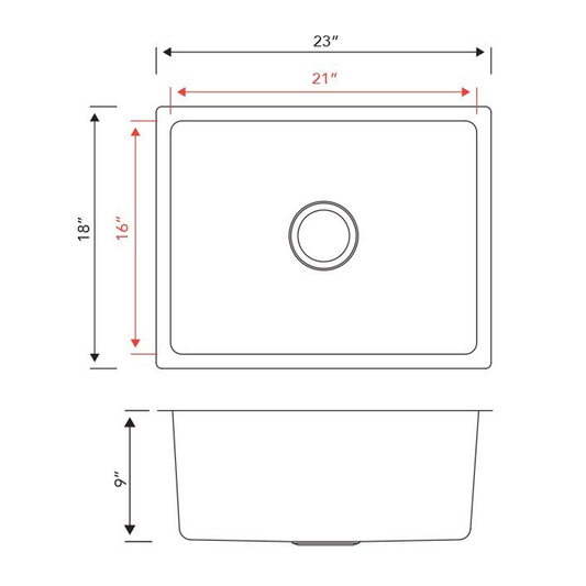 Pelican Int'l Urban Series PL-VR2318 R20 18 Gauge Stainless Steel Undermount Kitchen Sink 23" x 18" with Low Radius Corners