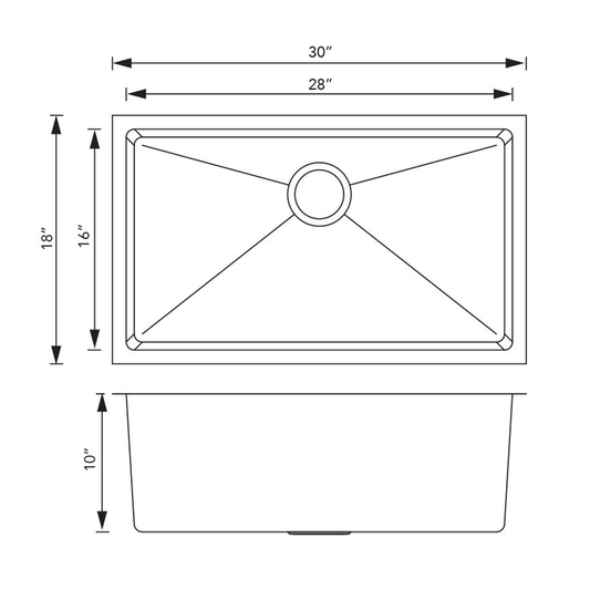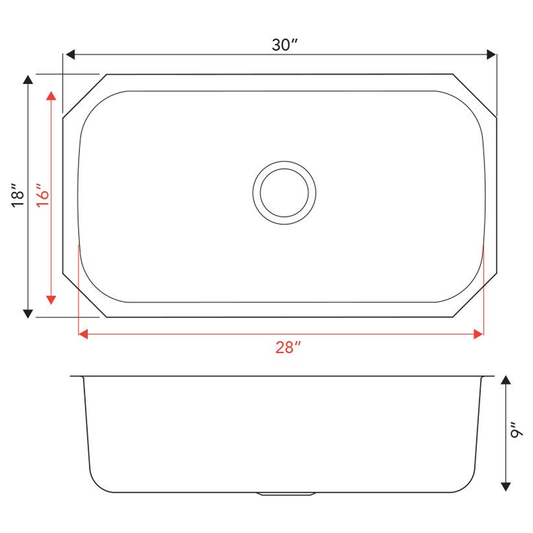 Pelican Int'l Signature Series PL-VS3018 16 Gauge Stainless Steel Single Bowl Undermount Kitchen Sink 30" x 18"