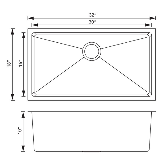 Pelican Int'l Handmade Series PL-HA117 R0 16 Gauge Stainless Steel Undermount Kitchen Sink 32" x 18" with Zero Radius Corners
