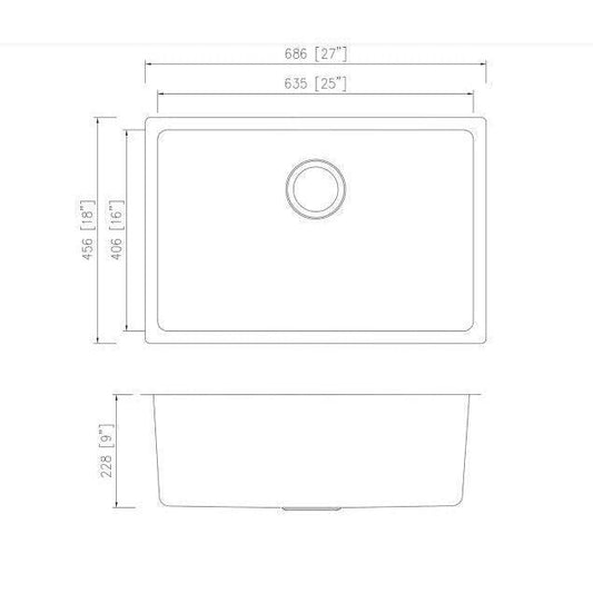 Pelican Int'l Urban Series PL-VR2718 R20 18 Gauge Stainless Steel Undermount Kitchen Sink 27" x 18" with Low Radius Corners
