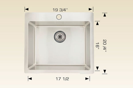 Whitehaus Pearlhaus 23" Brushed Stainless Steel Brushed Stainless Steel Small Square Single Bowl Commerical Freestanding Utility Sink