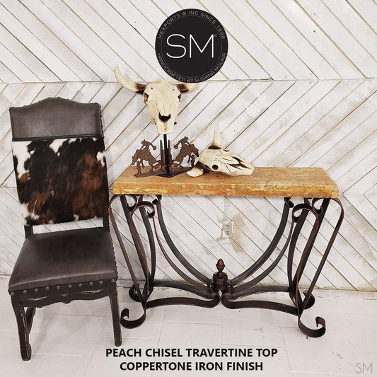 Mexports by Susana Molina 1216CT 44" Peach Travertine Stone Chiseled Edge Rectangular Console Table
