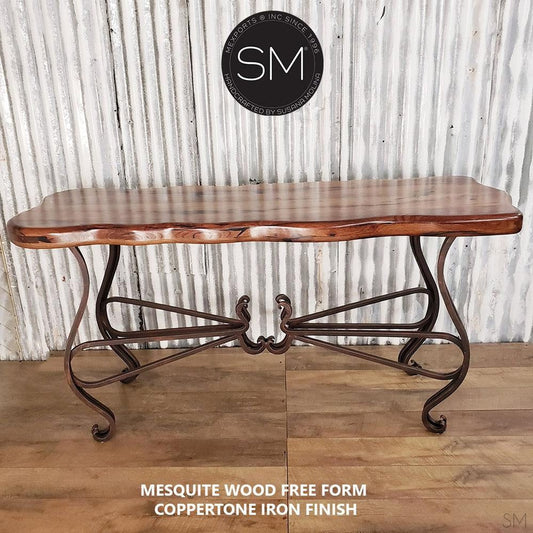Mexports by Susana Molina 1242CM 72" Mesquite Wood Top Free Form Edge No Inlay Console Table With Iron Base