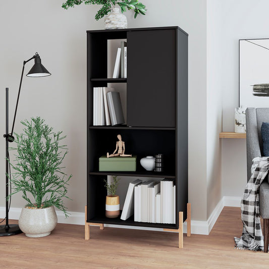 Manhattan Comfort Bowery Bookcase Cabinet With 5 Shelves In Black & Oak