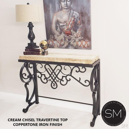 Mexports by Susana Molina 1255FT 44" Cream Travertine Stone Chiseled Edge Rectangular Console Table