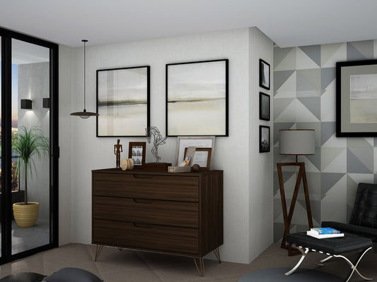 Manhattan Comfort Rockefeller Dresser Cabinet With 3-Drawers In Brown