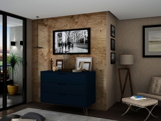 Manhattan Comfort Rockefeller Dresser Cabinet With 3-Drawers In Tatiana Midnight Blue