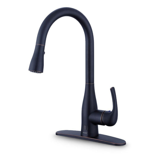 Bio Bidet Flow Motion Activated 17" Oil Rubbed Bronze Single Hole High Arc Smart Latch Kitchen Faucet With Dual Sensor and Dual Spray Function