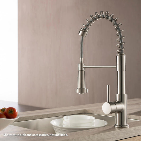 Blossom F01 205 9" x 17" Brushed Nickel Single Lever Handle Pull Down Kitchen Faucet