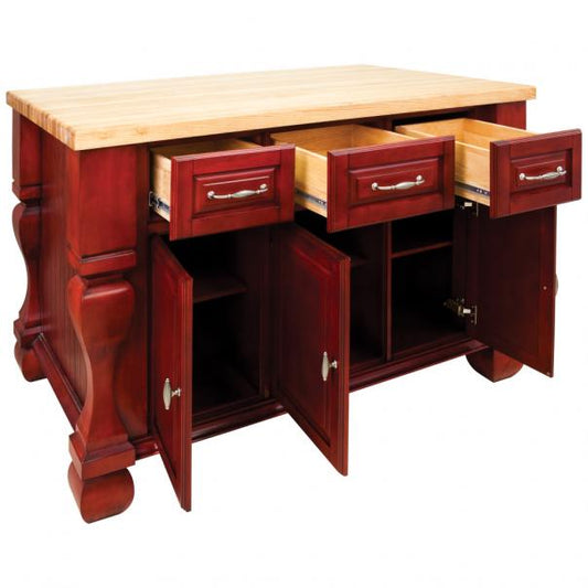Hardware Resources Tuscan 52-5/8" Brilliant Red Furniture-Style Kitchen Island