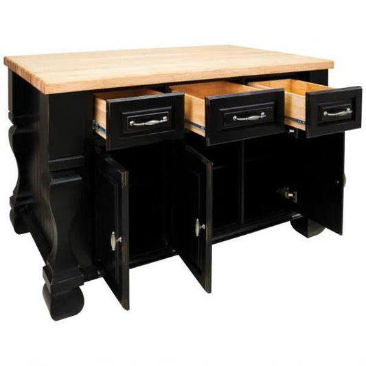 Hardware Resources Tuscan 52-5/8" Distressed Black Furniture-Style Kitchen Island