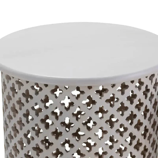 Crestview Collection Bengal Manor 22" x 22" x 24" Occasional Mango Wood Pierced Set of Tables In Distressed White Finish