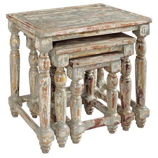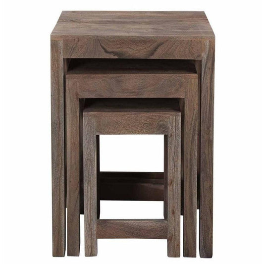 Crestview Collection Bengal Manor 26" x 18" x 24" Rustic Mango Wood Set of Nested Tables In Distressed Gray Finish