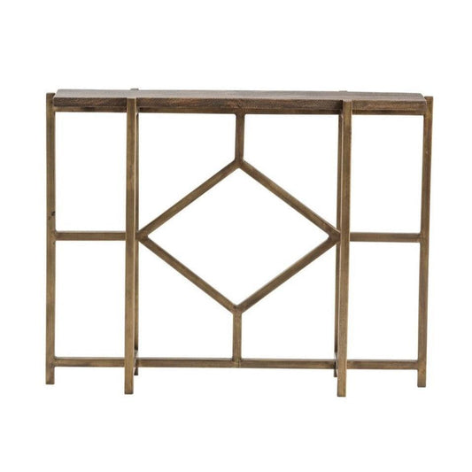 Crestview Collection Bengal Manor 42" x 10" x 32" Rustic Mango Wood And Iron Diamond Console In Antique Gold Finish