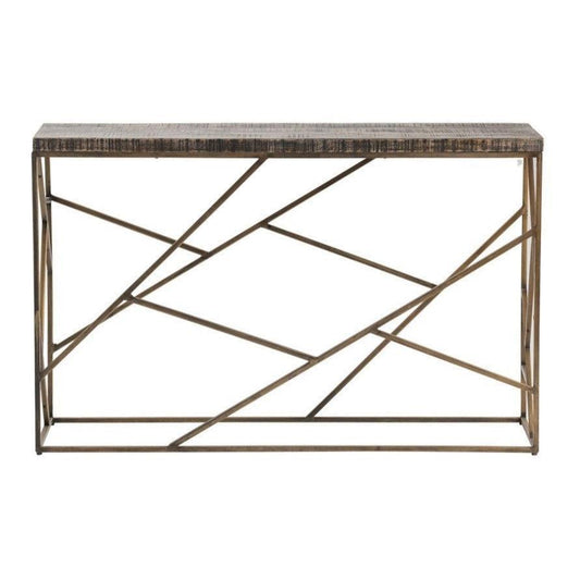 Crestview Collection Bengal Manor 51" x 15" x 32" Occasional Mango Wood Rectangle Console Table with Crazy Cut Iron In Aged Gold Finish In Burnished Ebony Finish